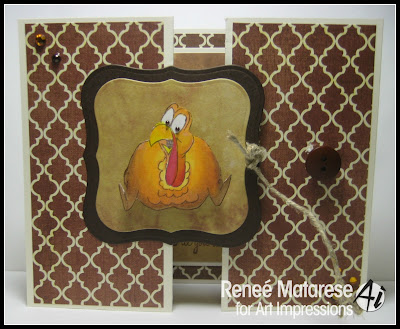 Today I'm sharing a couple of Thanksgiving cards with you. I know it's a little early for that but since the current challenge over at Art Impressions is Anything Goes I decided to take advantage of that and share them now.